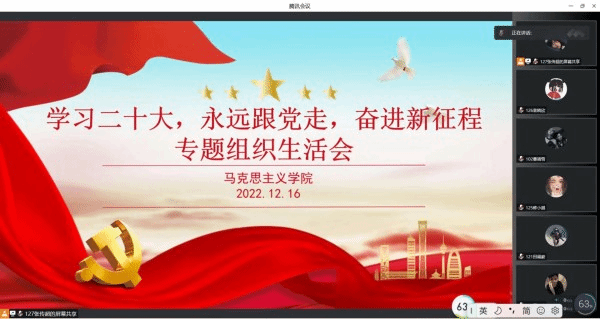 为深入学习宣传贯彻党的二十大精神,紧密联系团员思想学习工作实际,交流学习体会,12月16日下午,betway88西汉姆联以线上形式开展“学习二十大、永远跟党走、奋进新征程”专题组织生活会。